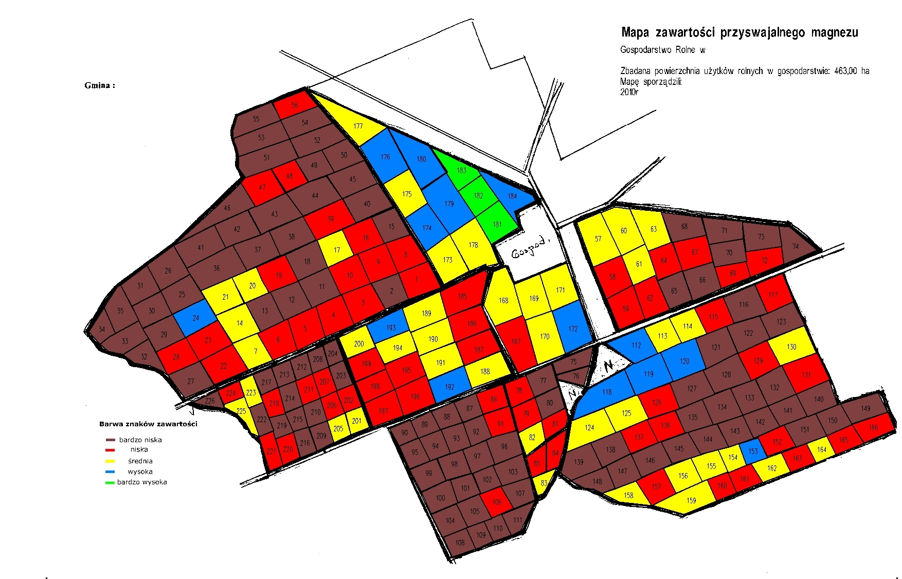 Kolorowe mapy zasobności gleb w składniki pokarmowe mogą zostać sporządzone również na wcześniej zeskanowanej mapie ewidencyjnej gospodarstwa.